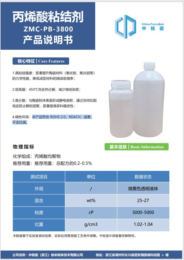 丙烯酸粘结剂ZMC-PB-3800