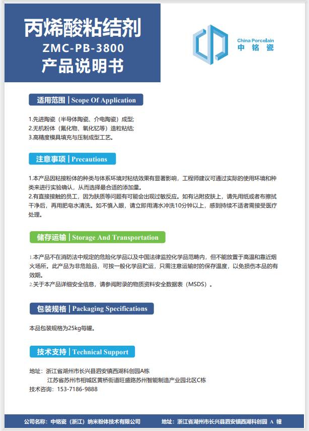 丙烯酸粘结剂ZMC-PB-3800的说明书有吗?